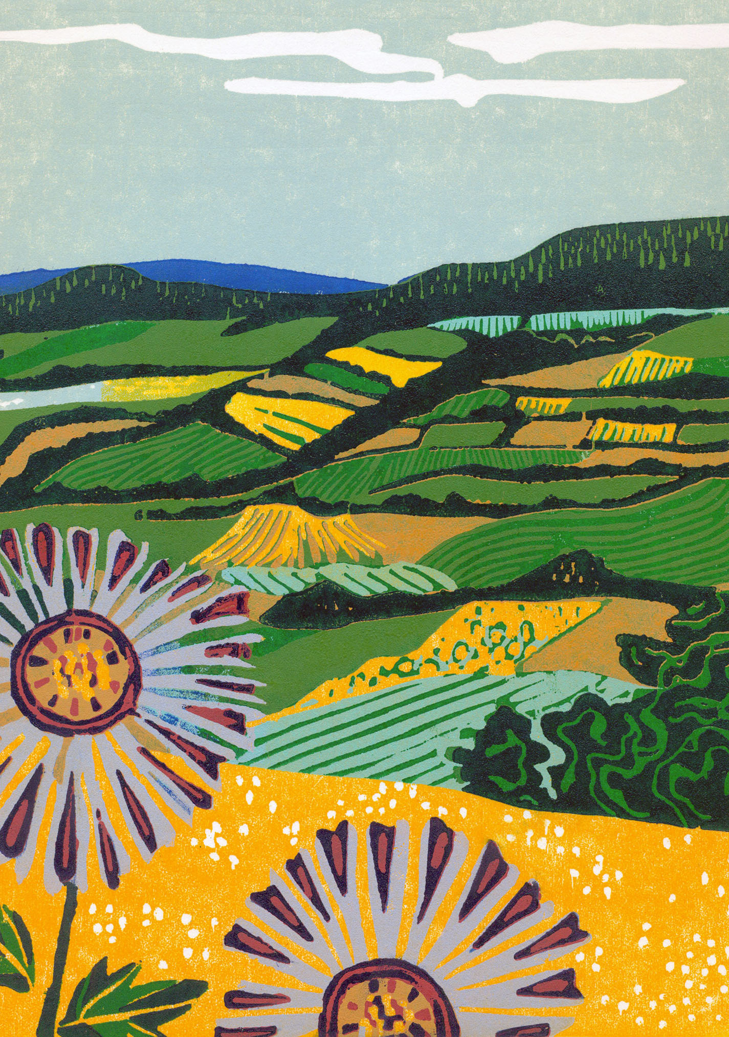 A high-resolution digitally produced greeting card version of one of my original hand-carved and hand-printed fine art linocuts.